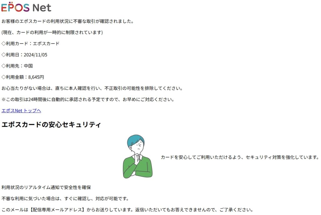 差出人: エポスカード <info-01epos.jp@service.benxiqnikjtee.co>