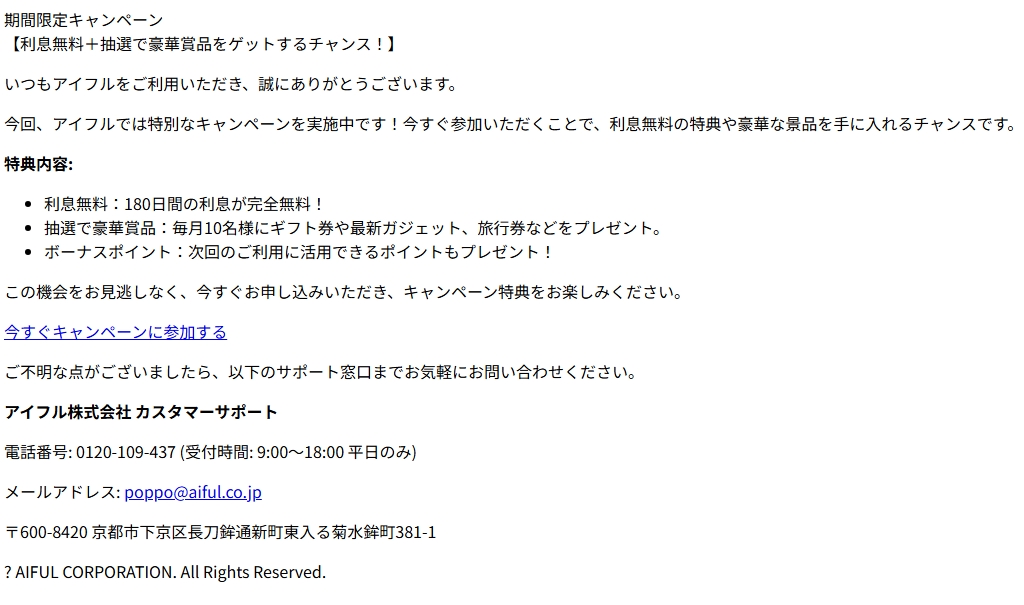差出人: アイフル限定キャンペーン <service@alpinegrassland.com>