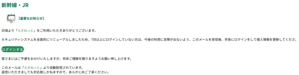 差出人: えきねっと <ekril-Email*******@creema.jp>