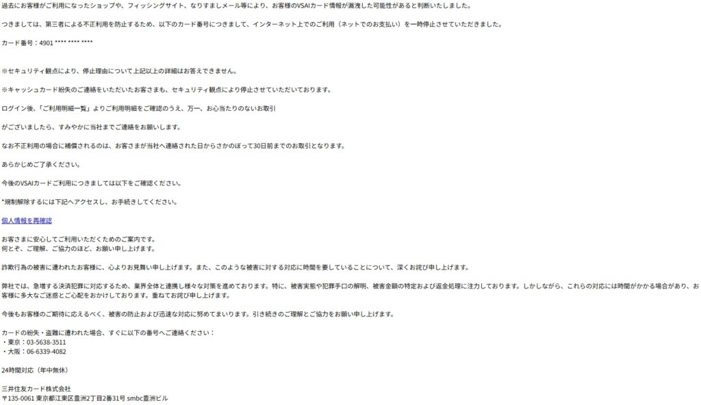 差出人: <SMBCカスタマーサービス> <smbc-card-Vpass.mailRLDS@wsj.jp>
