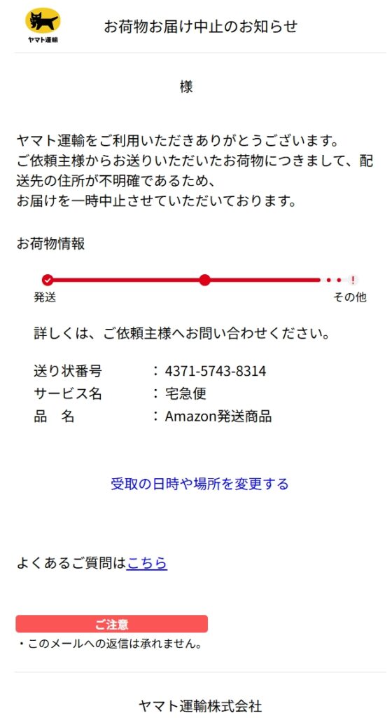 差出人: ヤマト運輸株式会社 <mail@kuronekeyemeto.com>