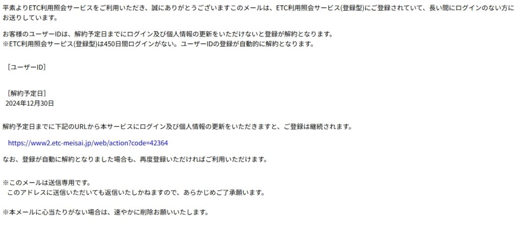 差出人: ETC利用照会サービス <etc-confirm@sdouh6.com>