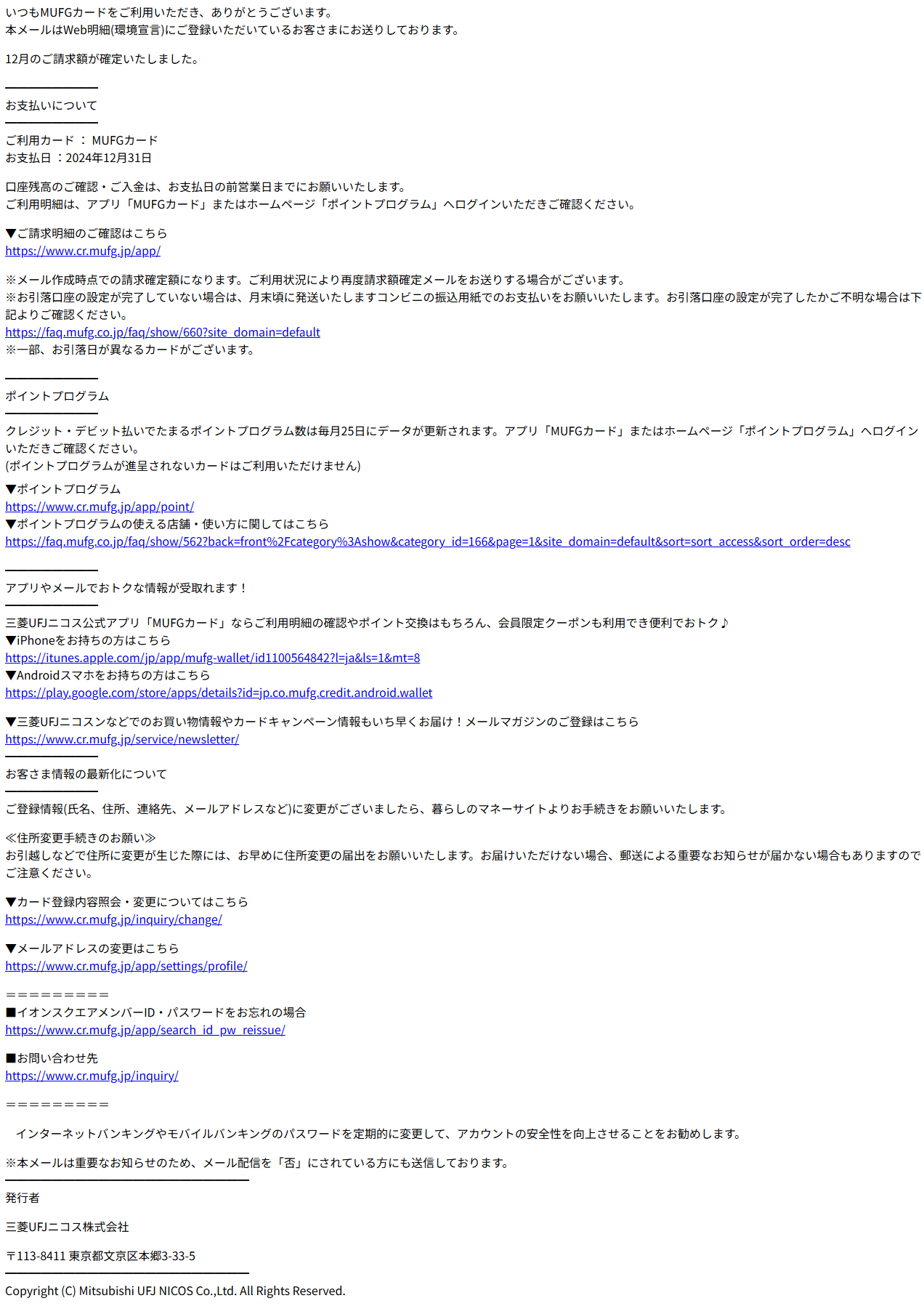 差出人: MUFGカード <MUFG@18ri1.cloud>