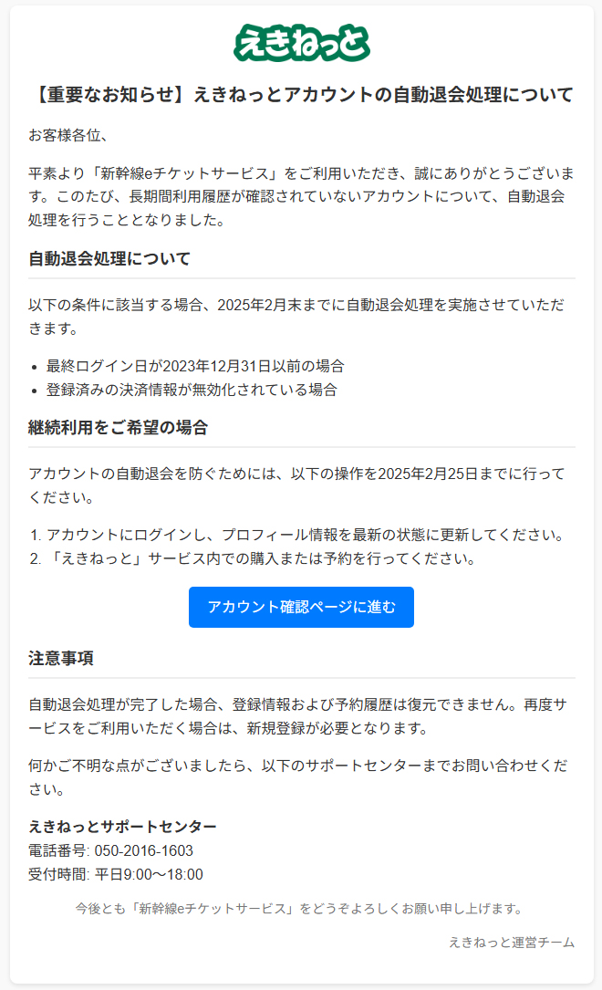 差出人: えきねっと <userc98azkl@itra.co.jp>