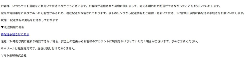 差出人: ヤマト運輸株式会社 <mail@kuronekoyamato.co.jp>