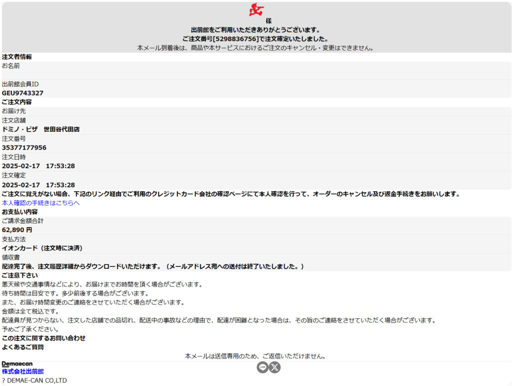 差出人: 出前館 <lfzljsvj@admin002.drotars.com>