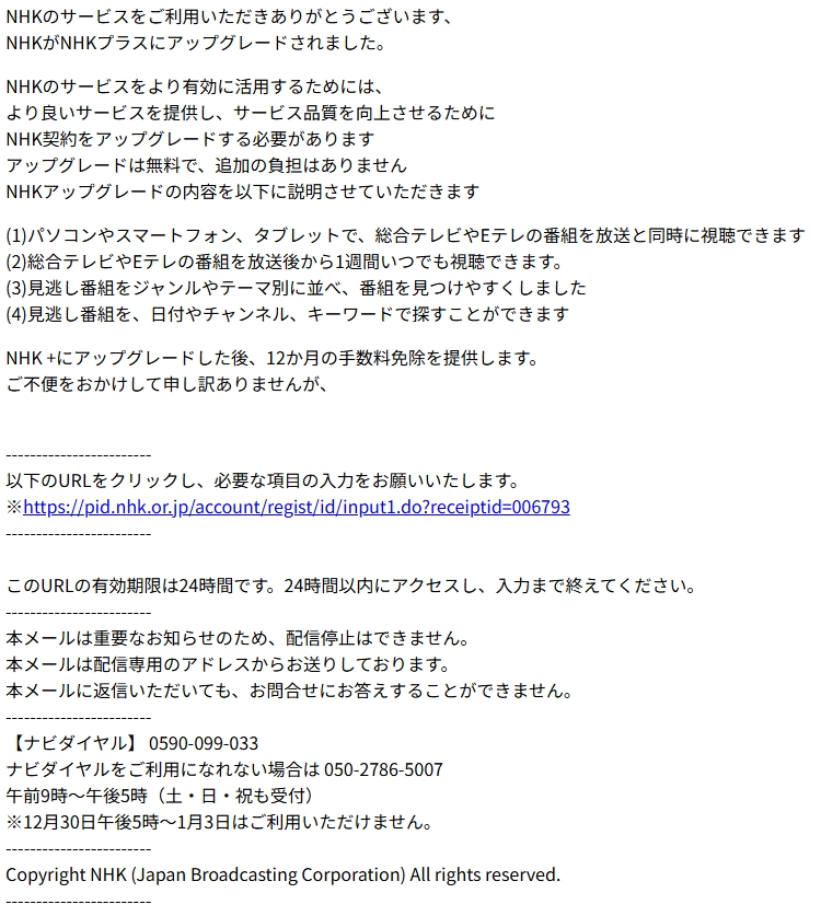 差出人: 日本放送協会(NHKプラス) <nhkplus-update@ae5jkmv70.asia>