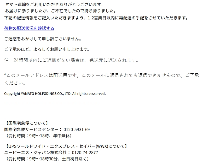 差出人: ヤマト運輸株式会社 <mail@kuronekoyamato.co.jp>