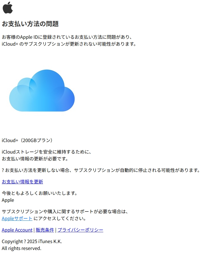 差出人: iCloud <zyuq.applestore.updateservice.mailzyuq@mktab.net>