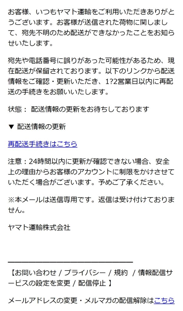 差出人: ヤマト運輸株式会社 <mail@kuronekoyamato.co.jp>
