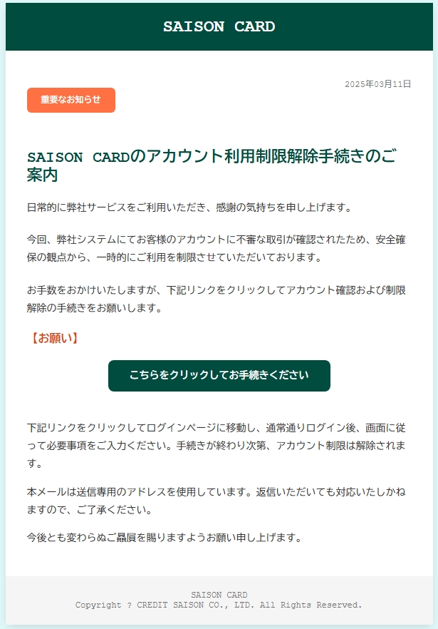 差出人: SAISON CARD <info@mail.rakuten-card.co.jp>