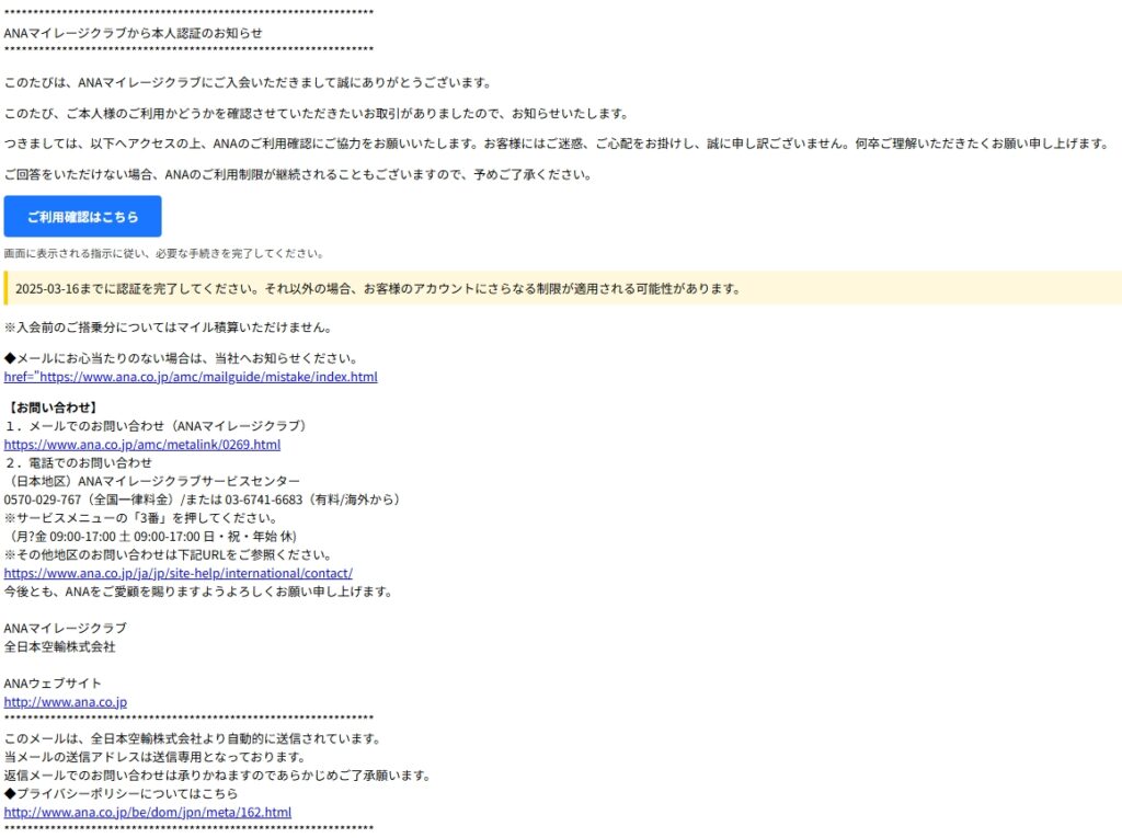 差出人: ANA SKY WEB <ana-card-Administrator-Xj8y@g.softbank.co.jp>