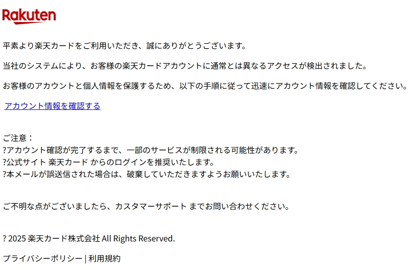 差出人: 【楽天カード株式会社】 <adminp50M@accounts.nintendo.com>