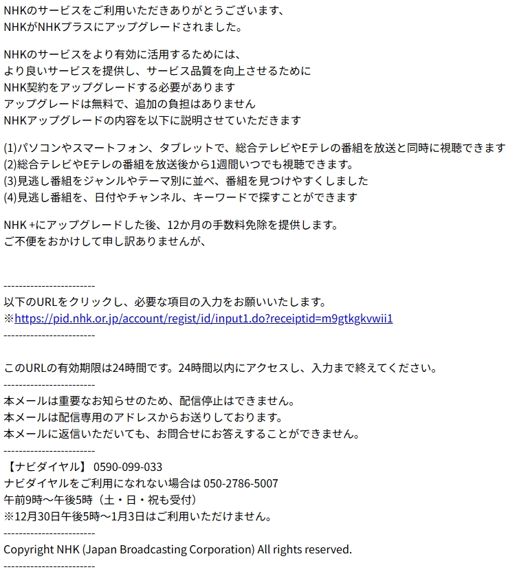 差出人: NHKプラス <mail.nhk-voaecub@service.xyd22.cc>