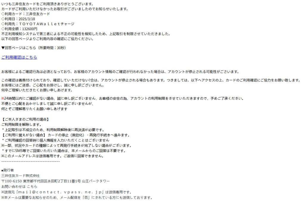 差出人: 三井住友カード <mail@contact2.vpass.ne.jp>