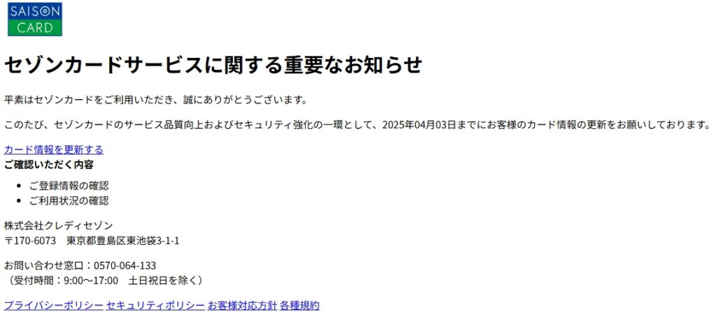 差出人: セゾンカード <saison_Net.Ab1A1@accounts.nintendo.com>