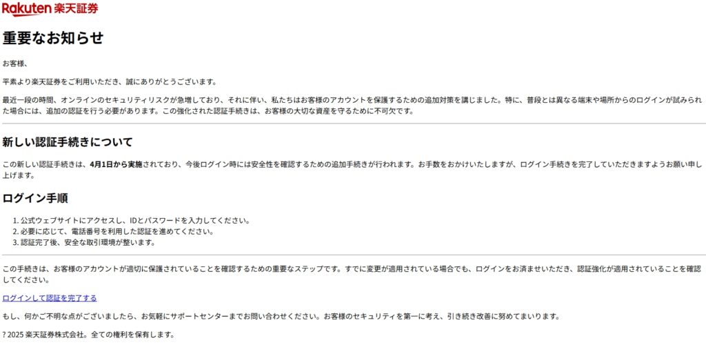 差出人: 楽天証券 お知らせセンター <support@rakuten-sec.co.jp>