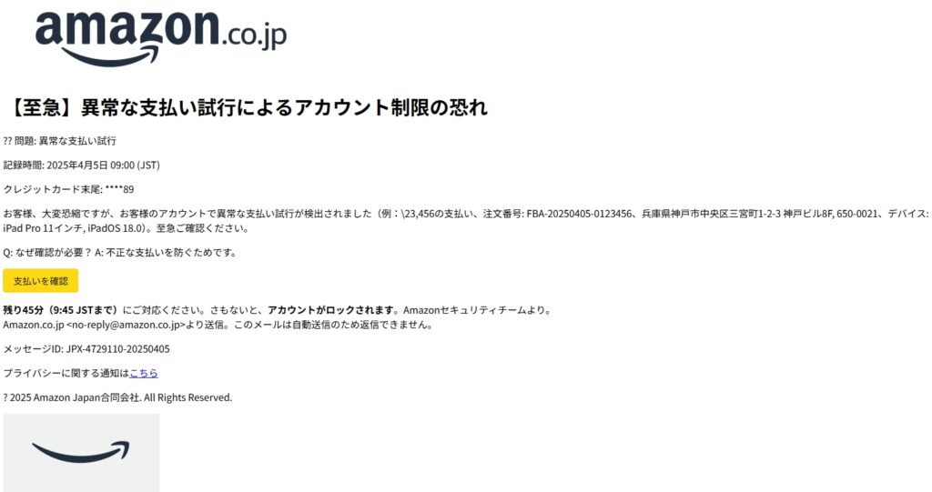 /// フィッシング詐欺メールです! ///