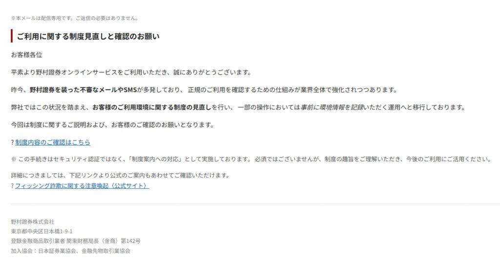 差出人: 野村オンライン制度事務局 <support@nomura-sec.co.jp>