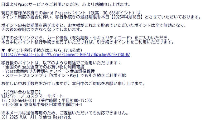 差出人: Vpass自動配信 <help@vdpxc.com>