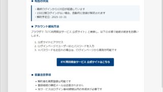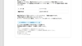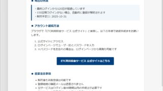 Created at: 2025/10/30 15:54:09 JST ( Delivered after 15 mins )From: ETCマイレージサービス事務局 <member-rlseqw@service.jlrqqoq.cn> ...