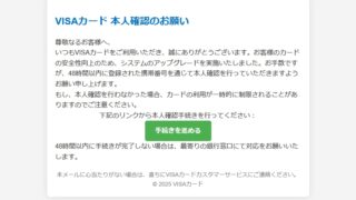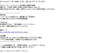 迷惑メール 件名: 重要:visacardの使用確認手続きを速やかにお願いします。matsumiyaharuka468638402003