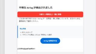 迷惑メール 件名: 【大阪】不明な AirTag が一緒に移動しています