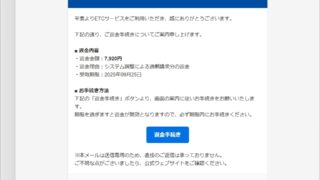 迷惑メール 件名: ETCご利用料金のご返金について