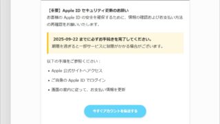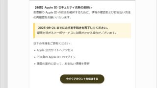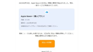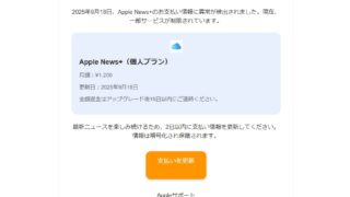 迷惑メール 件名: 【重要】Apple ID に登録されたお支払い方法の更新が必要です