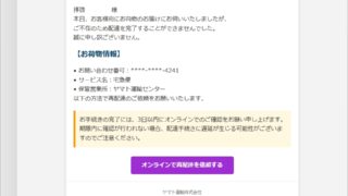 迷惑メール 件名: ヤマト運輸より再配送のご案内