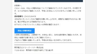 件名: 【東京電力株式会社】電気料金滞納のお知らせ