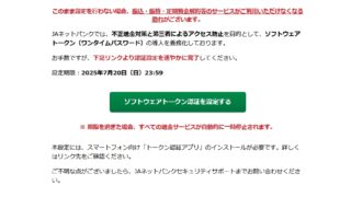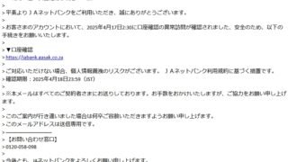迷惑メール 件名: JAネットバンクより重要なお知らせ(セキュリティ通知)