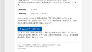 迷惑メール 件名: Vpass会員様限定Vポイント10,000円分プレゼント